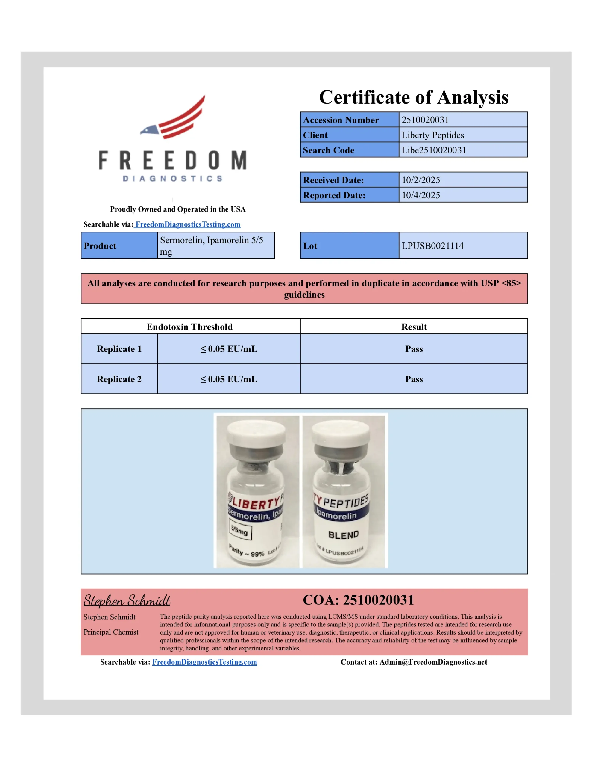 Third-party tested for ~99% purity